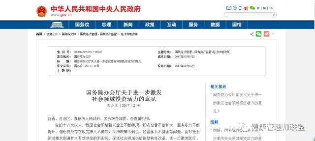 3月16日,国务院办公厅发布《关于进一步激发社会领域投资活力的意见》(以下简称《意见》),明确在社会需求大、供给不足、群众呼声高的医疗、教育等领域尽快有突破,重点解决医师多点执业难、纳入医保定点难、养老机构融资难等问题。
